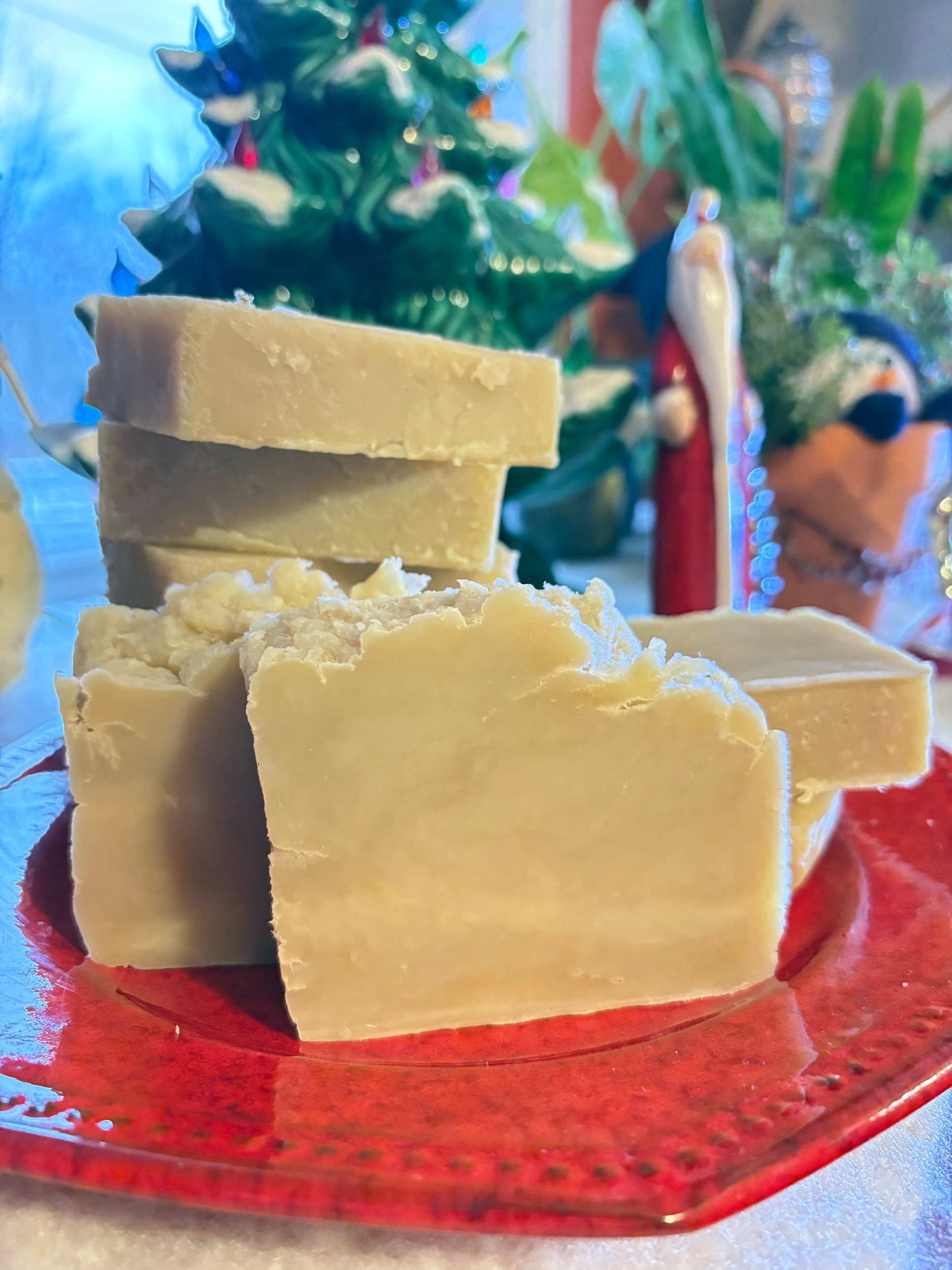 Yule is a bar steeped in winter ritual and quiet celebration. Frankincense lays a resinous, sacred base while bright orange peel lifts the scent like candlelight against the dark. Cinnamon and clove bring a gentle, familiar warmth—spiced, comforting, and deeply seasonal. This soap feels like evergreen boughs, glowing hearths, and the still magic of the longest night, made to be used slowly as the light returns.