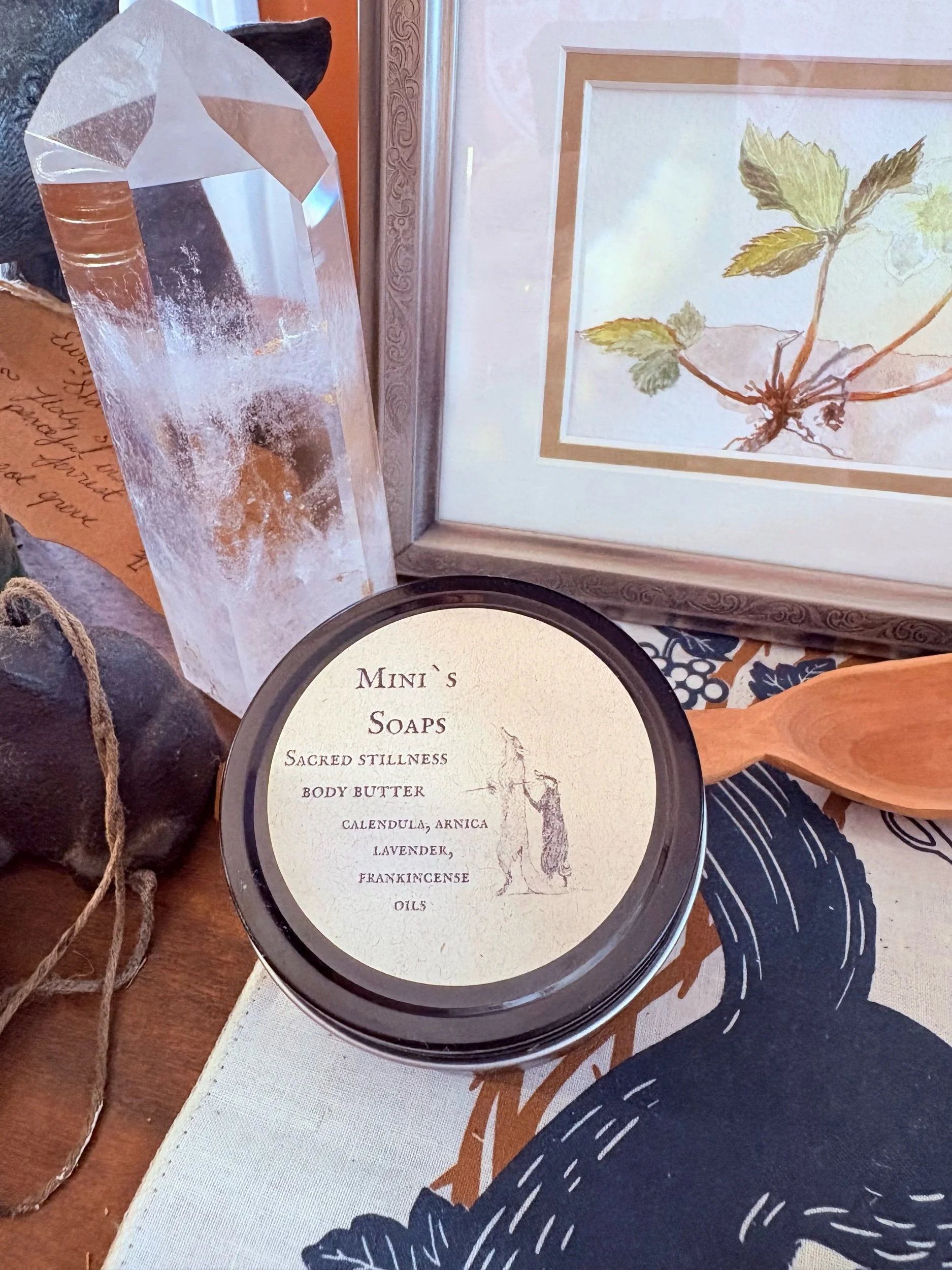 My body butter is boosted with chamomile, calendula, and arnica for a healing touch, made with luxurious natural oils and tempered to perfection.